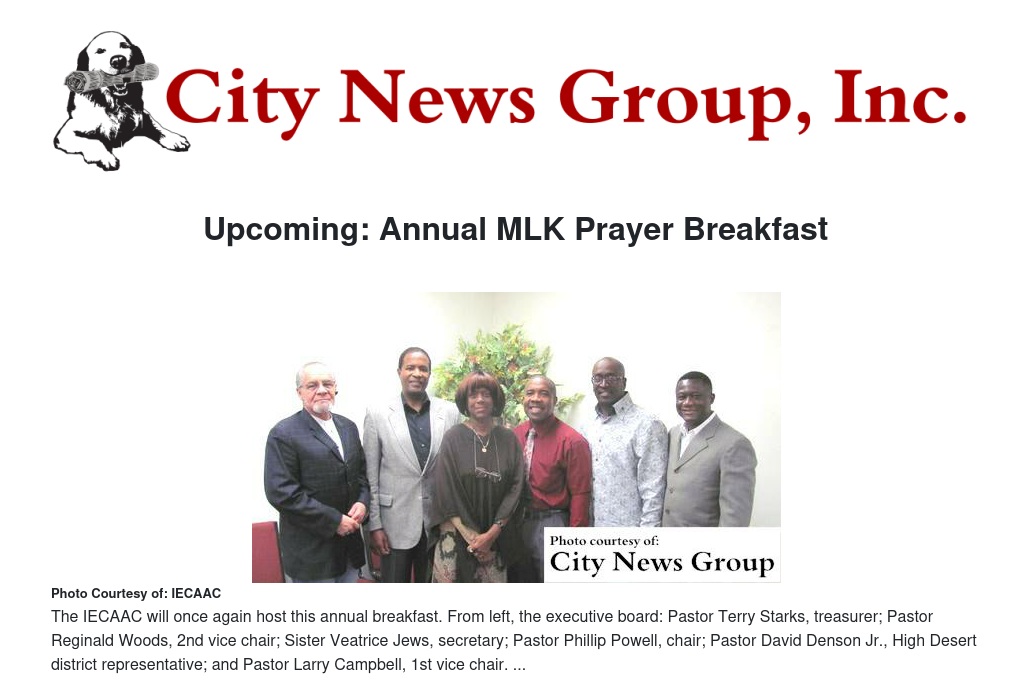 The Inland Empire Concerned African American Churches (IECAAC)is sponsoring the event, and community award recipients this year are as follows: