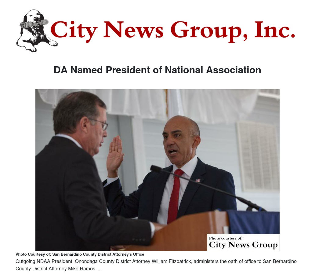 SAN BERNARDINO >> San Bernardino County District Attorney Mike Ramos was sworn in as president of the National District Attorneys Association at a ceremony held July 18 in Boston, Massachusetts.