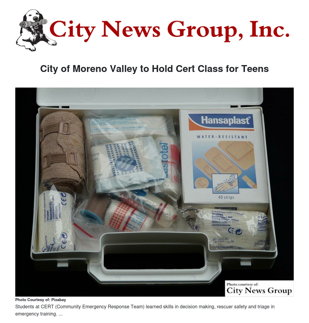 MORENO VALLEY>> Moreno Valley's Office of Emergency Management recently hosted a 3-day Teen CERT (Community Emergency Response Team) class for 15 students from Canyon Springs High School.