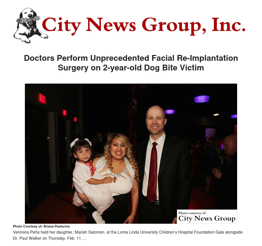 Doctors at Loma Linda University Children’s Hospital (LLUCH) successfully re-implanted a portion of a 2-year-old girl’s face after she was attacked by a dog. The dog had removed a large portion of her face – from the top of her nose to the top of her lip, including part of her left cheek. Mariah’s story was shared at the 23rd annual Loma Linda University Children’s Hospital Foundation Gala, presented by Hard Rock Hotel Palm Springs, on Feb. 11.