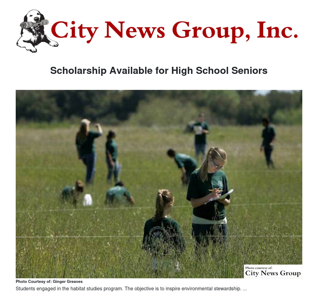 “We are very excited that our offerings have resulted in the evolution of a very unique environmental education pathway program for students beginning in the 3rd grade through high school. Our hope now is that the scholarship component adds incentive to our young citizens to consider environmental sciences as field of study,” said Ginger Greaves, Executive Director.