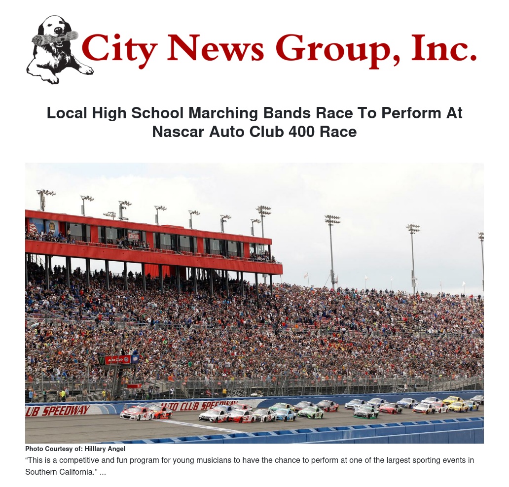 “Marching bands love putting on a show and our track puts on a great NASCAR show too,” said Dave Allen, President of Auto Club Speedway. “This is a competitive and fun program for young musicians to have the chance to perform at one of the largest sporting events in Southern California.”
