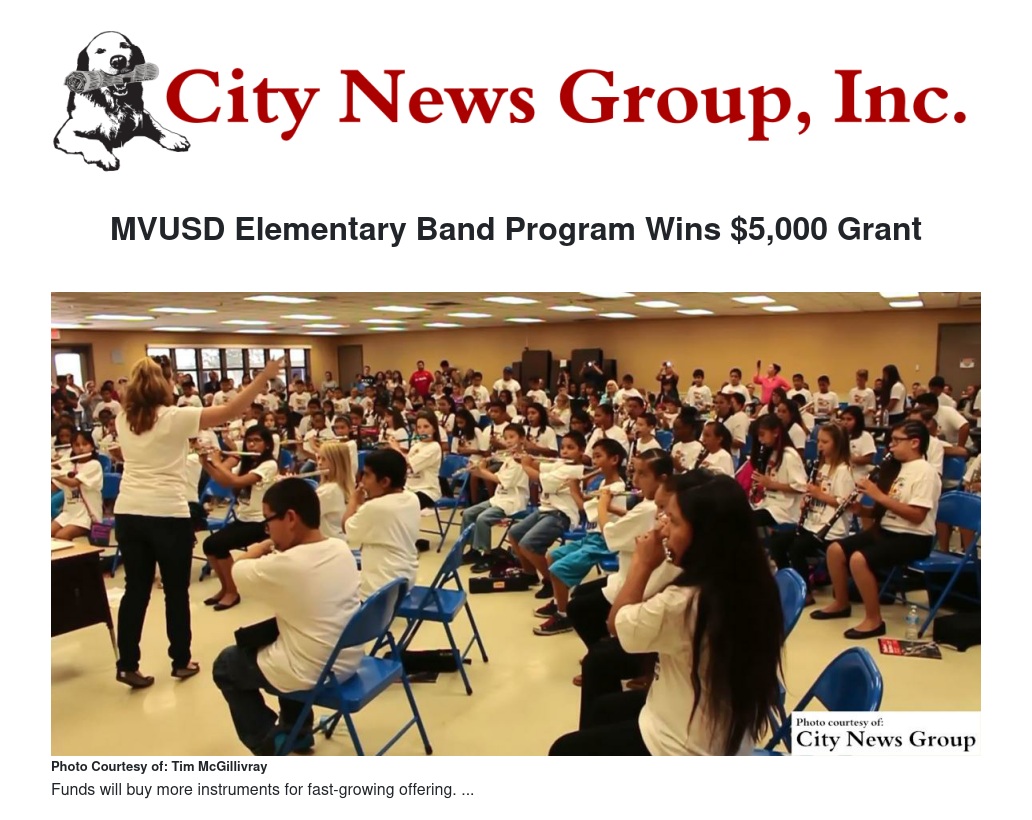 MVUSD Elementary Band Program Wins $5,000 Grant
