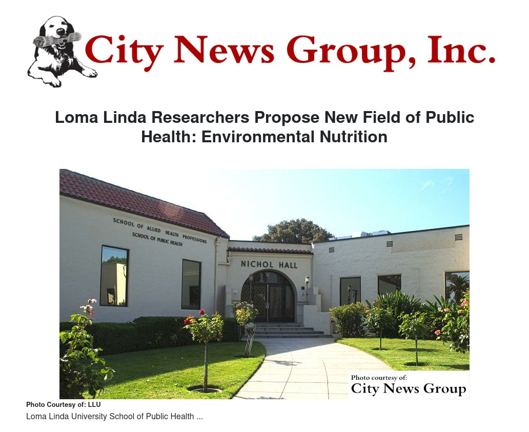 Loma Linda Researchers Propose New Field of Public Health: Environmental Nutrition