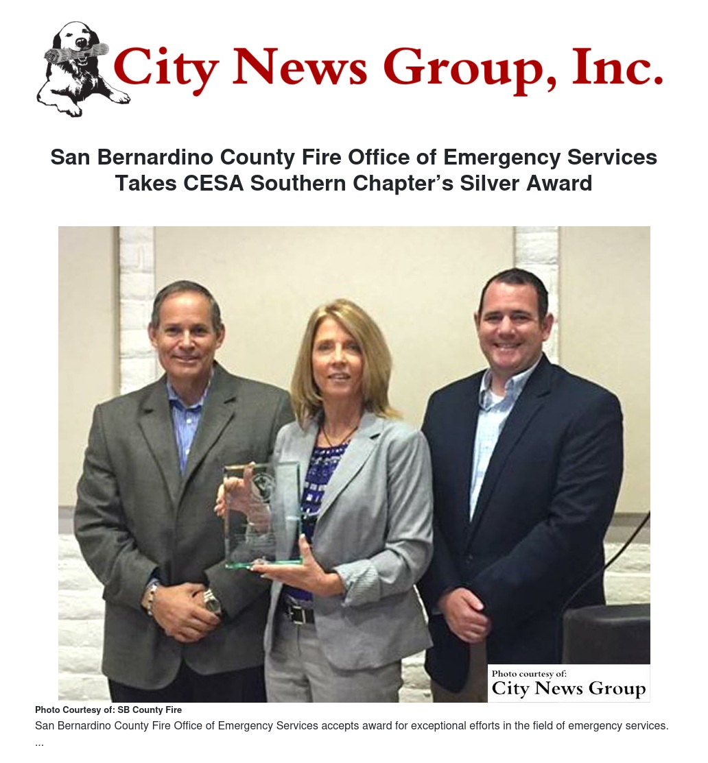San Bernardino County Fire Office of Emergency Services Takes CESA Southern Chapter’s Silver Award