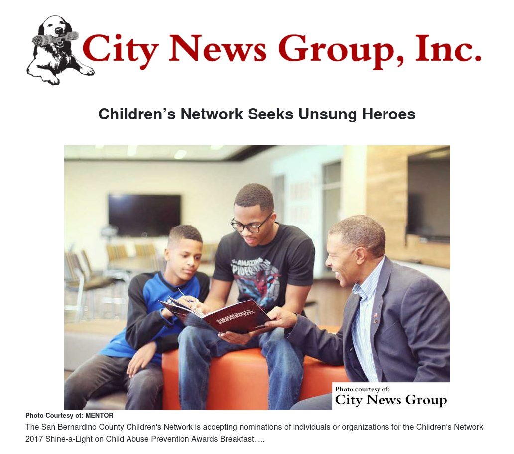 SAN BERNARDINO>> San Bernardino County Children’s Network is seeking to recognize the unsung heroes in the lives of children. The department is accepting nominations of individuals or organizations for the Children’s Network 2017 Shine-a-Light on Child Abuse Prevention Awards Breakfast. The awards program is now in their 19th year and it is are presented by Children’s Network to those who have provided exceptional service to at-risk children and youth.