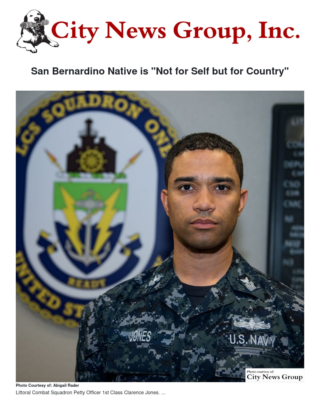 Petty Officer 1st Class Clarence Jones is a gunner's mate and a member of Commander, LCS Squadron One which supports both variants of littoral combat ships based in San Diego.