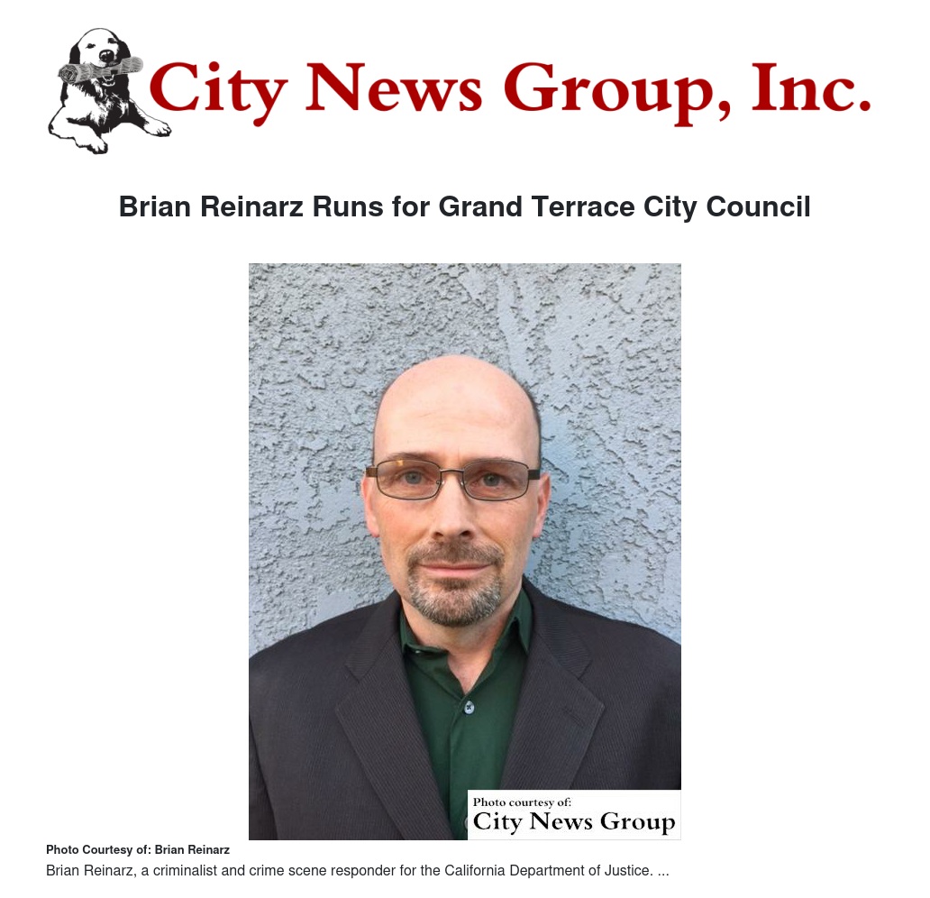 GRAND TERRACE>> Brian Reinarz, Grand Terrace resident of 16 years, community volunteer and military veteran, is running for Grand Terrace City Council.