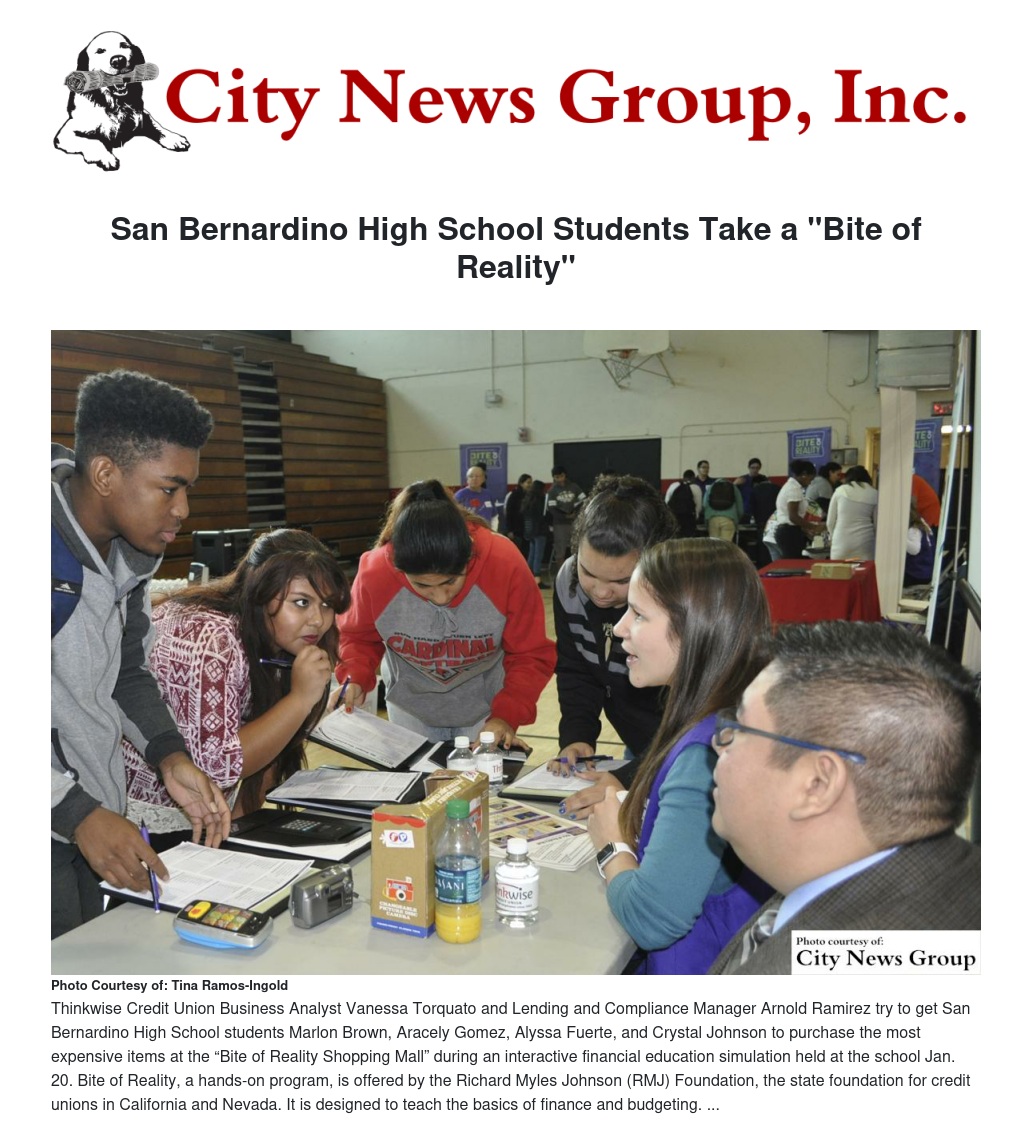 Seniors at San Bernardino High School got a “bite of reality” recently when they attended an interactive financial education simulation designed to teach them how to manage money.