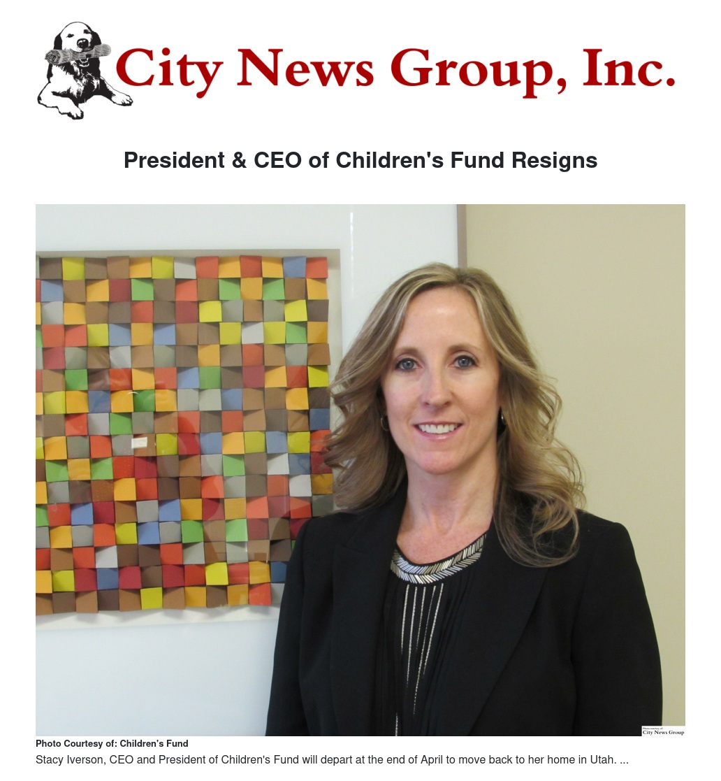 "While the Children's Fund board and staff will definitely miss Stacy's leadership, we are blessed that through her work she leaves this organization healthy and strong,” states Neal Waner, the Chair of Children’s Fund Board of Directors. “She has built a quality team and put us in a position of strength, enabling us to attract a high caliber CEO to continue the important work of Children's Fund."