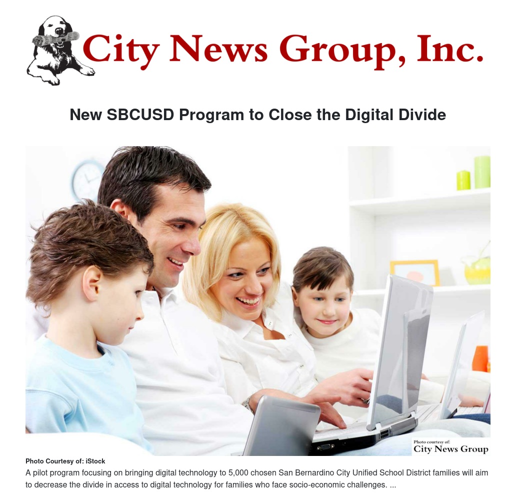 For 5,000 socio-economically disadvantaged families in the San Bernardino City Unified School District (SBCUSD), the digital divide will shrink starting this summer.