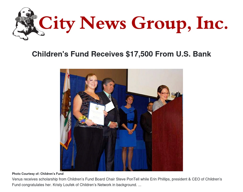 U.S. Bank has approved and presented $17,500 for Children’s Fund Foster Youth Educational Programs which will empower foster and former foster youth through higher education.