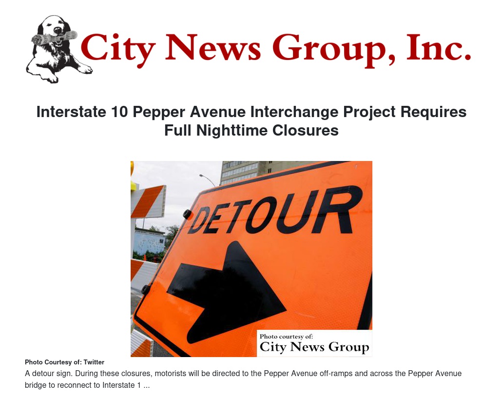 Interstate 10 Pepper Avenue Interchange Project Requires Full Nighttime Closures