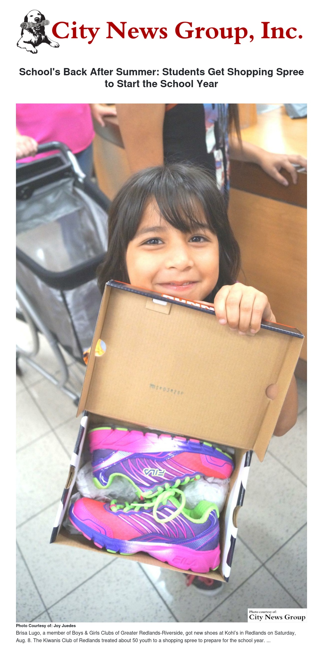 The youth went on a shopping spree at Kohl’s in Redlands with Kiwanis members, who accompanied them through the store. Each Boys & Girls Club member got a $100 Kohl’s gift card – purchased by Kiwanis – and the volunteers helped each Club member choose clothes, shoes and other essentials. Many Kiwanis members paid the difference on bills that totaled over $100.