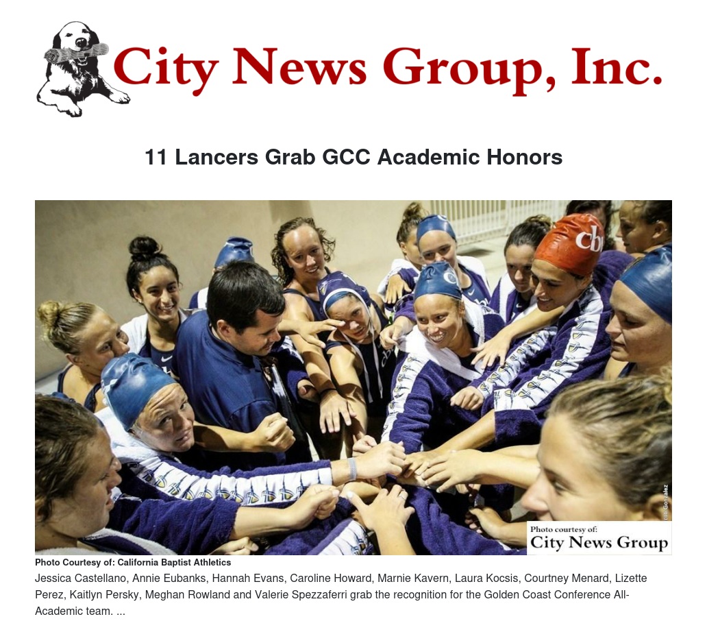MORENO VALLEY >> When it comes to California Baptist University's women's water polo team, it is evident the Lancers strive for excellence both in and out of the pool. It was clear from the Golden Coast Conference All-Academic team release, as CBU placed 11 student-athletes on the all-academic team for the second year in a row.