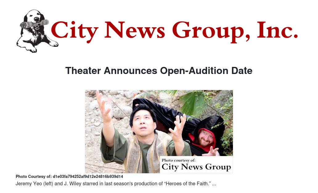 The auditions include the following productions: "Heroes of the Faith" Sunday night special on Sept. 25; "Alexander Graham Bell" Lifetales set for Oct. 4-7; "A Christmas Song In My Heart" Sunday night specials on Dec. 11 & 18; "Jackie Robinson" LifeTales on Feb. 21 - 24, 2017; and "Clara Barton of the Red Cross" Lifetales on Apr. 25 - 28, 2017.
