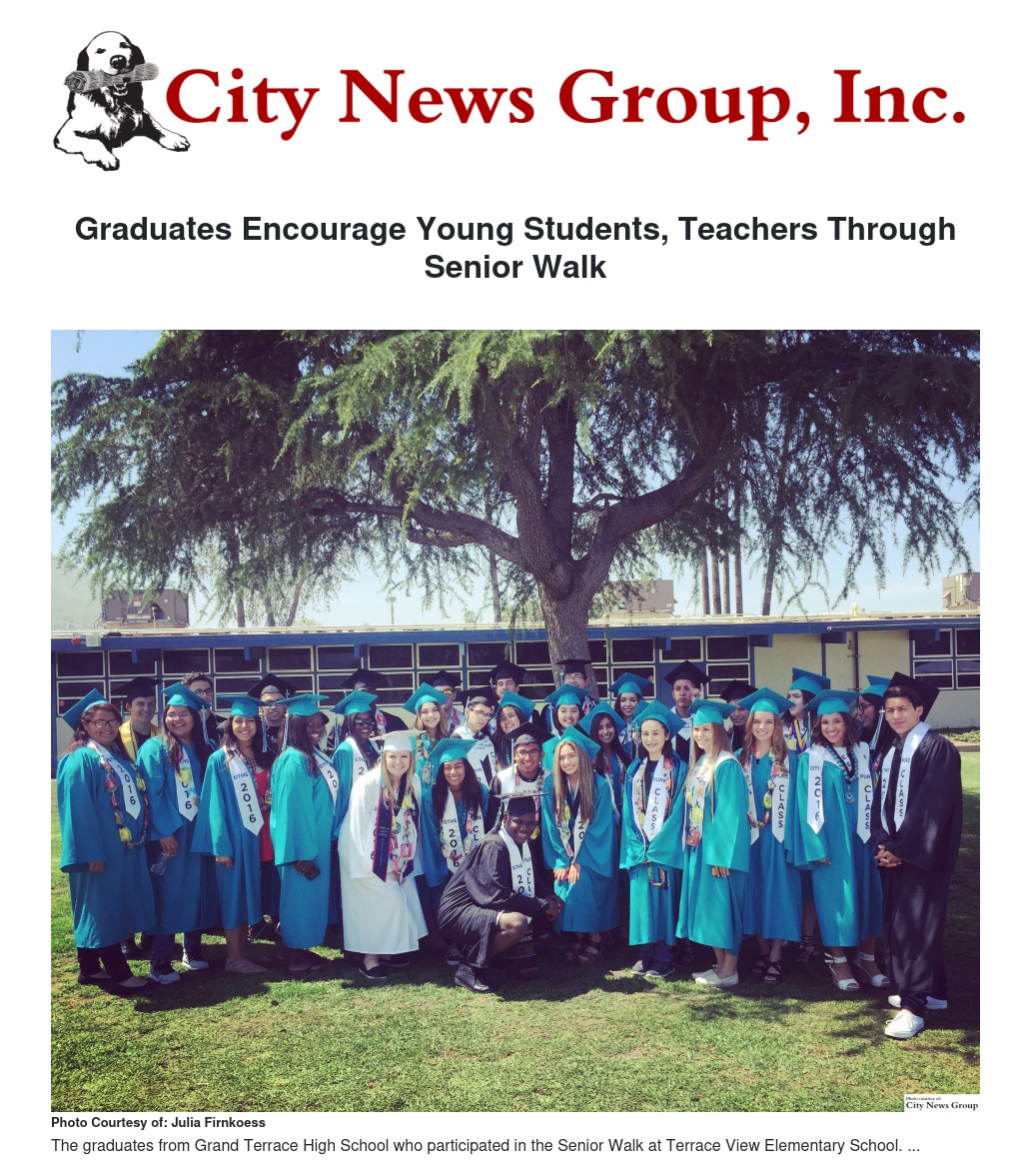 On June 6, a group of 40 graduating seniors from GTHS traveled around Grand Terrace to Terrace View Elementary, Wilson Elementary and Terrace Hills Middle schools.
