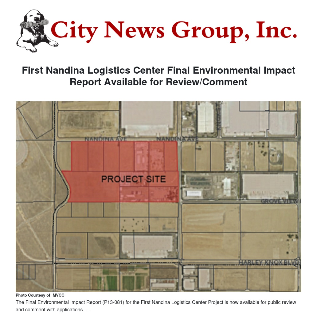 First Nandina Logistics Center Final Environmental Impact Report Available for Review/Comment