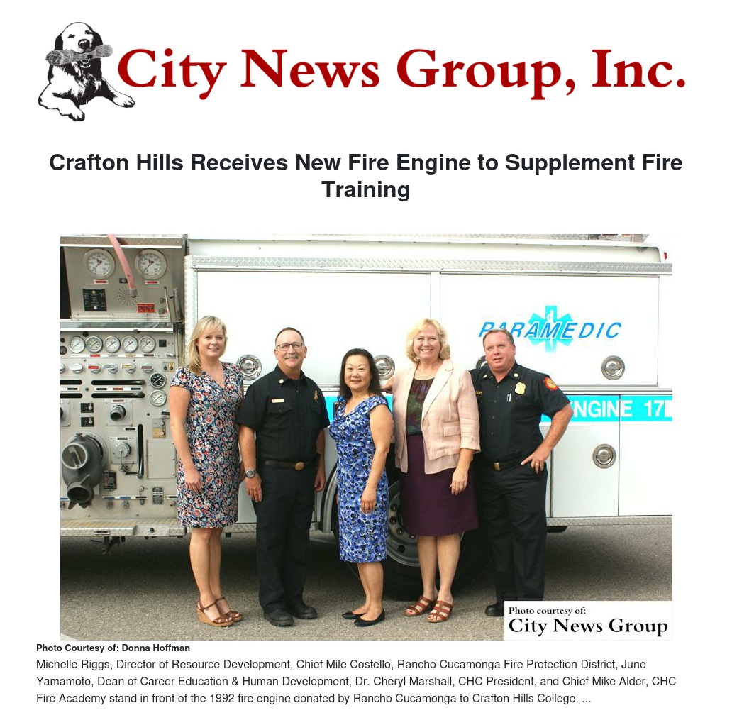 In the proposal to donate the engine to Crafton, Chief Costello commented that nearly 50 percent of the city’s current safety personnel have graduated from a Fire Academy at a community college, and many of them attended Crafton Hills.