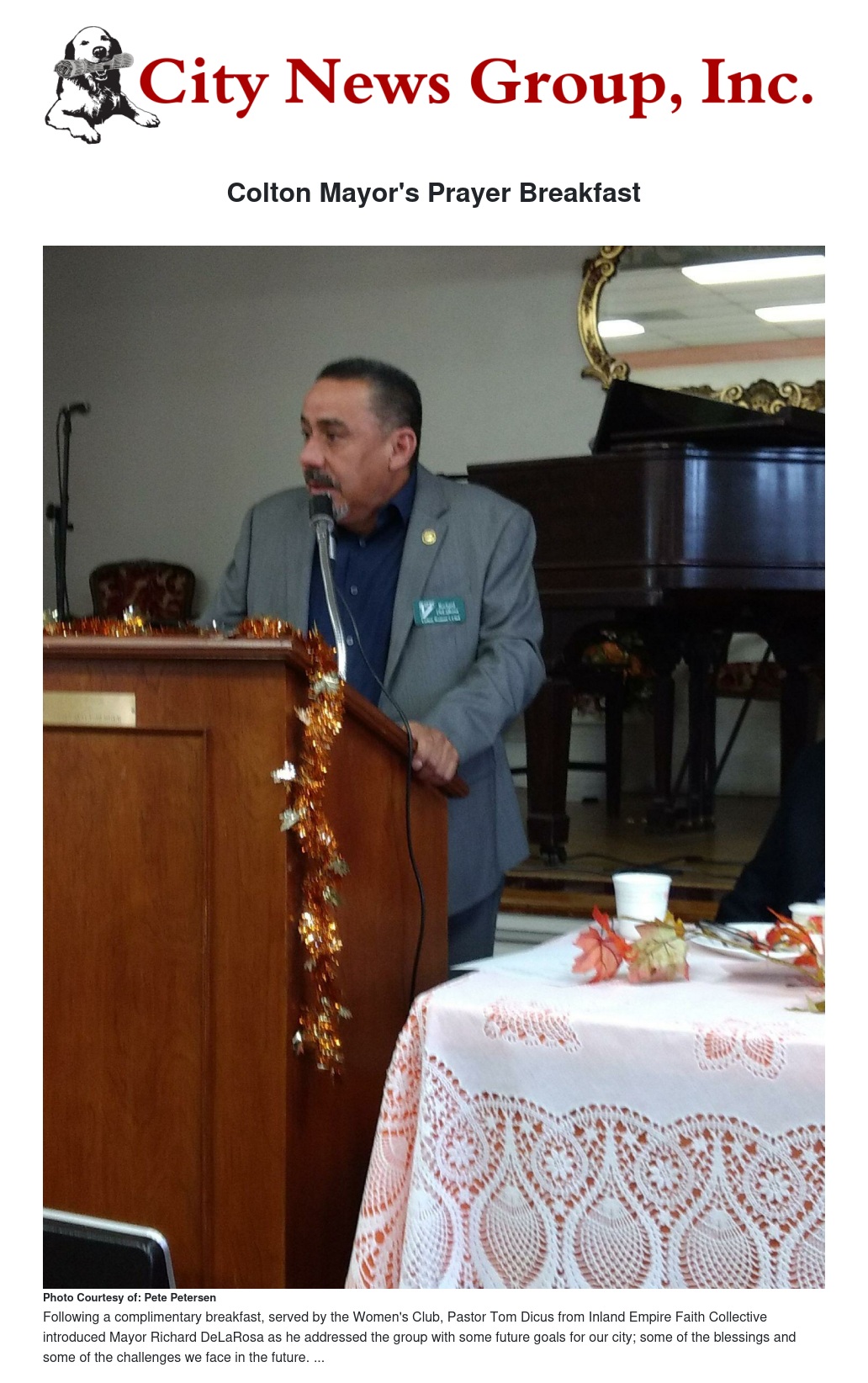The Colton Mayor's Prayer Breakfast was held Thursday, October 12th at the Women’s Club, 495 North 7th Street at 8 a.m.