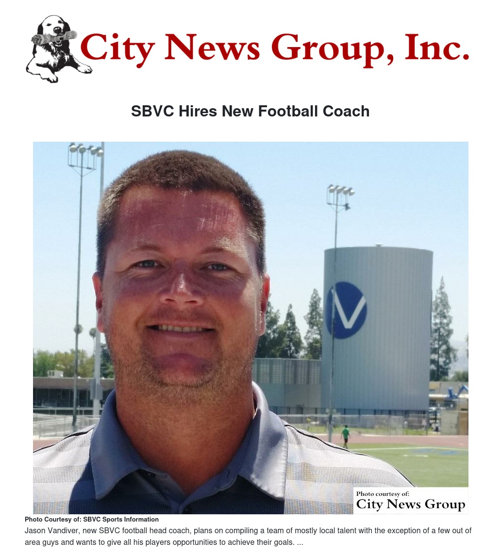 SAN BERNARDINO >> San Bernardino Valley College football team has a new head coach, Jason Vandiver, joining the Wolverines after leading one of the highest scoring offenses in the California Community College Athletic Association last year as an assistant at Los Angeles Valley College.