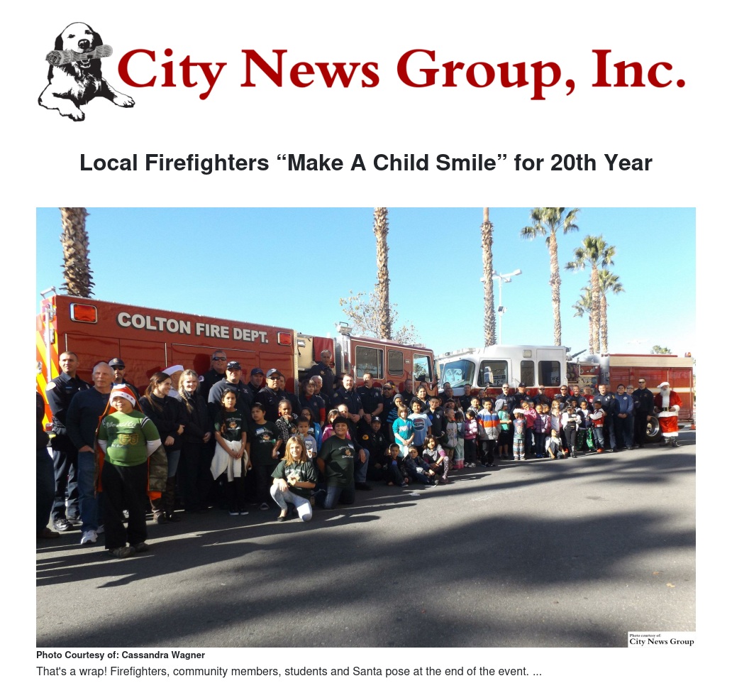 For 20 years the Colton Fire Department has worked with the CJUSD, alternating between eight schools, to take 50 deserving children each on a $100 shopping spree in Wal-Mart during the holiday season.