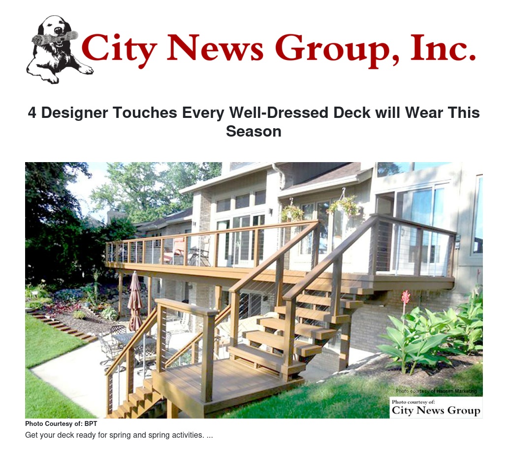 When spring arrives will your deck be ready for "primetime?" Or will it still be wearing the shabby remnants of last season's look? Clunky, view-blocking railings, a rectangular layout and dark stain are so last decade. Before warm weather gets here, consider upgrading your outdoor living space with the trends that every well-dressed deck will be wearing this year.