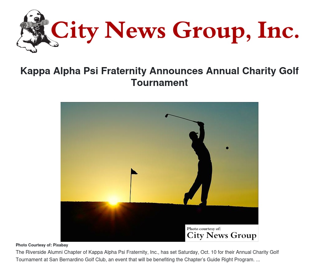 The Riverside Alumni Chapter of Kappa Alpha Psi Fraternity, Inc., has set Saturday, Oct. 10 for their Annual Charity Golf Tournament at San Bernardino Golf Club. Again this year, the tournament will be benefiting the Chapter’s Guide Right Program.