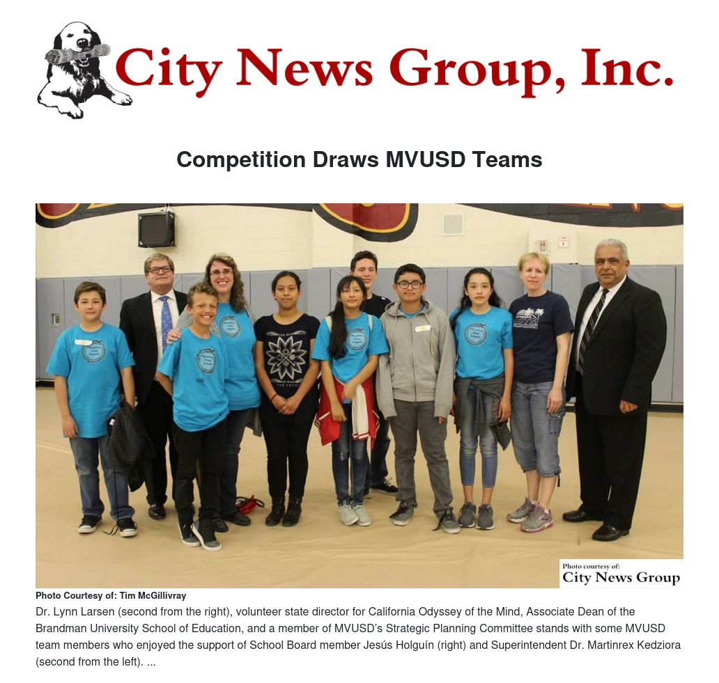 MORENO VALLEY>> Five teams of Moreno Valley Unified School District students competed in the Inland Empire Odyssey of the Mind Tournament at Indian Springs High School in San Bernardino on Saturday, March 4.