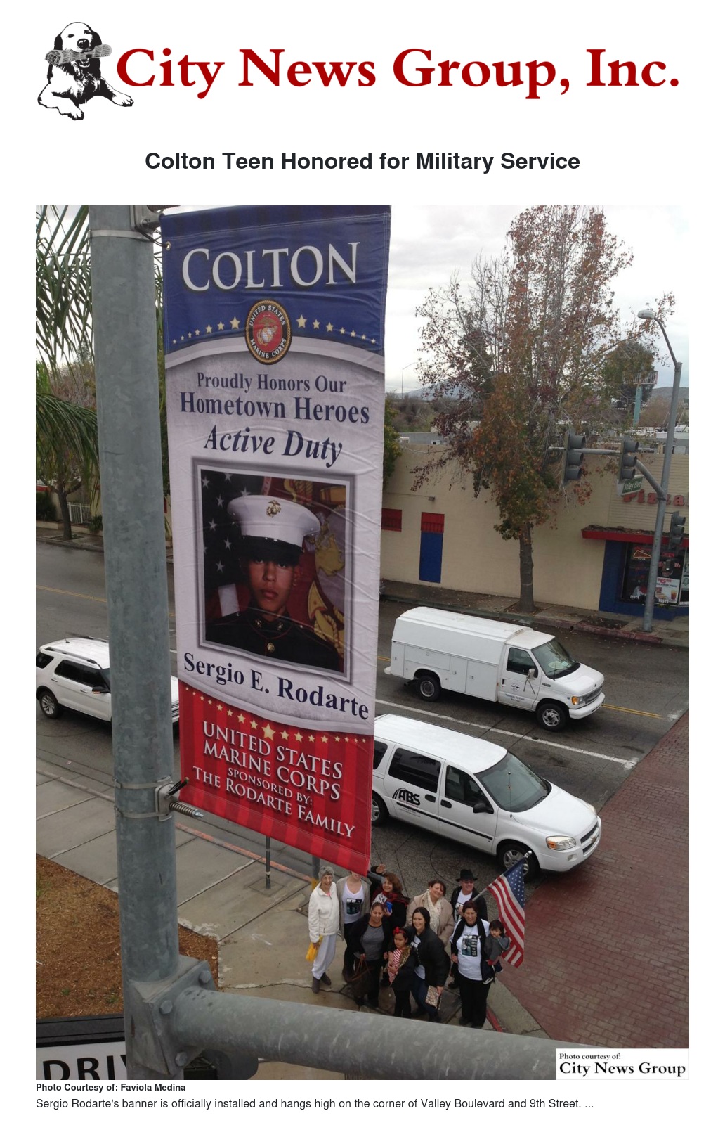 Sergio Rodarte, who is actively serving in the Marine Corps, was recently honored by his family and close friends back at home in Colton as they celebrated his Military Banner installation ceremony.