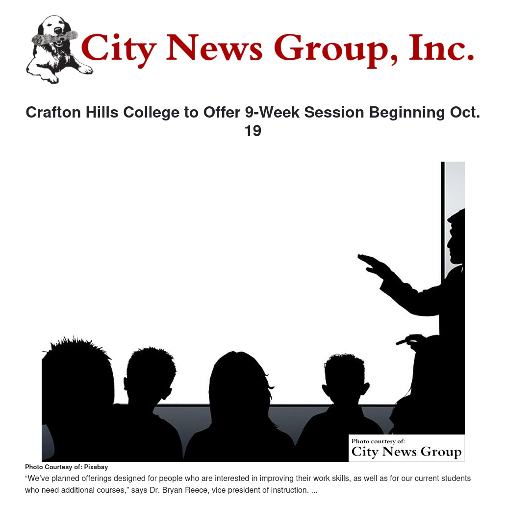 Crafton Hills College is adding class sections for a 9-week session that will begin October 19.