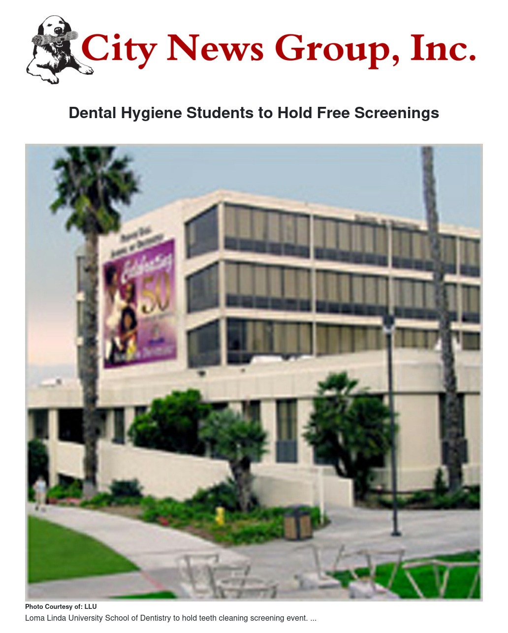 Dental hygiene students will hold screenings for reduced-cost or no-cost teeth cleanings on Monday, Oct. 13, at Loma Linda University School of Dentistry. The event is for screenings only, and appointments may be made if follow-up dental hygiene care is recommended.