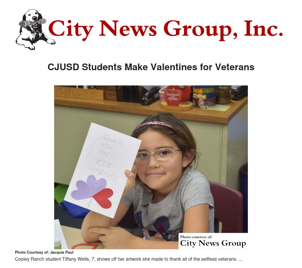 Students across the Colton Joint Unified School District have been creating valentines for veterans to let our service men and women know they are cared for.