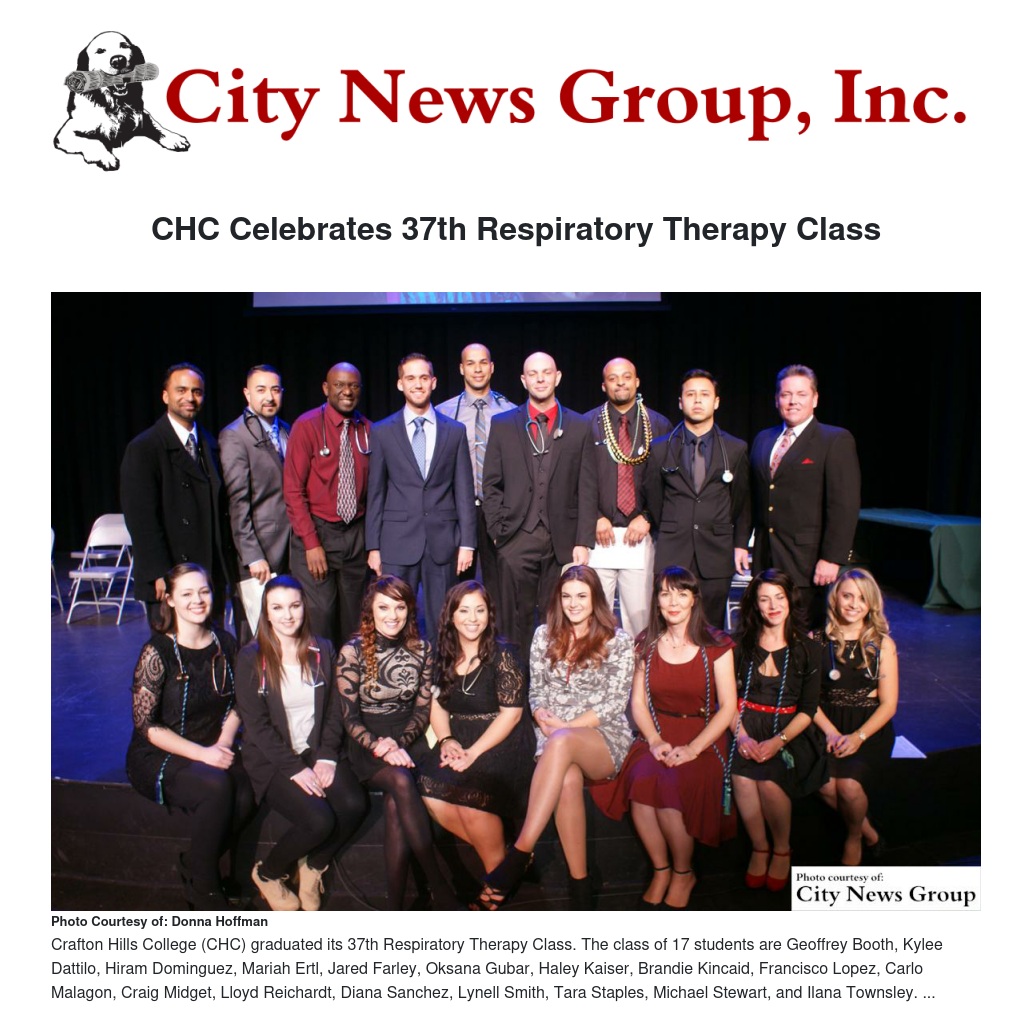 Crafton Hills College (CHC) graduated its 37th Respiratory Therapy Class on Thursday, Dec. 17 in the Performing Arts Center.