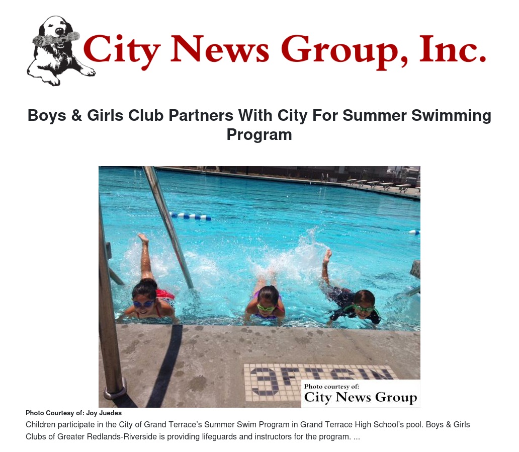 GRAND TERRACE >> Boys & Girls Clubs of Greater Redlands-Riverside is partnering with the City of Grand Terrace to offer a Summer Swim Program at Grand Terrace High School and it is not too late to join.