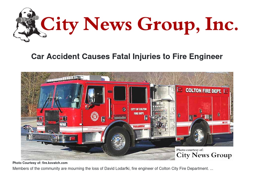 Car Accident Causes Fatal Injuries to Fire Engineer