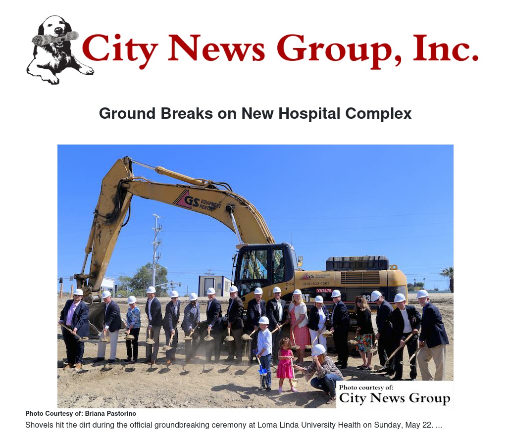 LOMA LINDA >> Loma Linda University Health (LLUH) has officially broken ground on the hospital complex that will house the new adult hospital and expanded Children’s Hospital. Over 3,000 people looked on as the shovels hit the dirt at the community groundbreaking event Sunday, May 22.