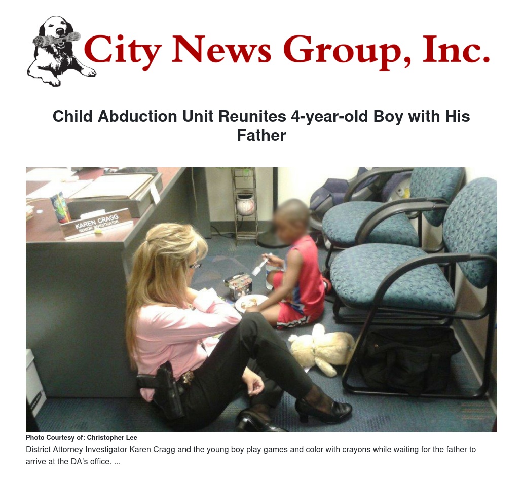 "The work they do every day is very emotionally-charged, and they continually do their best to ensure that children are safe and that the court’s child custody orders are followed,” said Trager-Dvorak. “In this situation, it was very rewarding to watch Dad, with tears in his eyes, happy to have his son back, and hugging him like he would never let go. I had to fight back tears myself.”