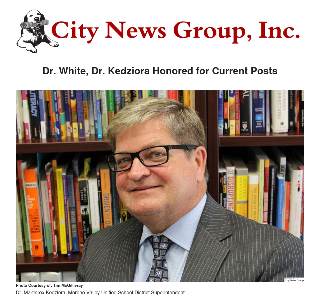 White and Kedziora each have more than 30 years of education experience, serving at every level of responsibility at various school districts. In their six years together at Moreno Valley Unified, the district’s graduation rate has increased by 20.5 percent – by far the greatest increase for any school district in Riverside County – and closed the “achievement gap” in the process.