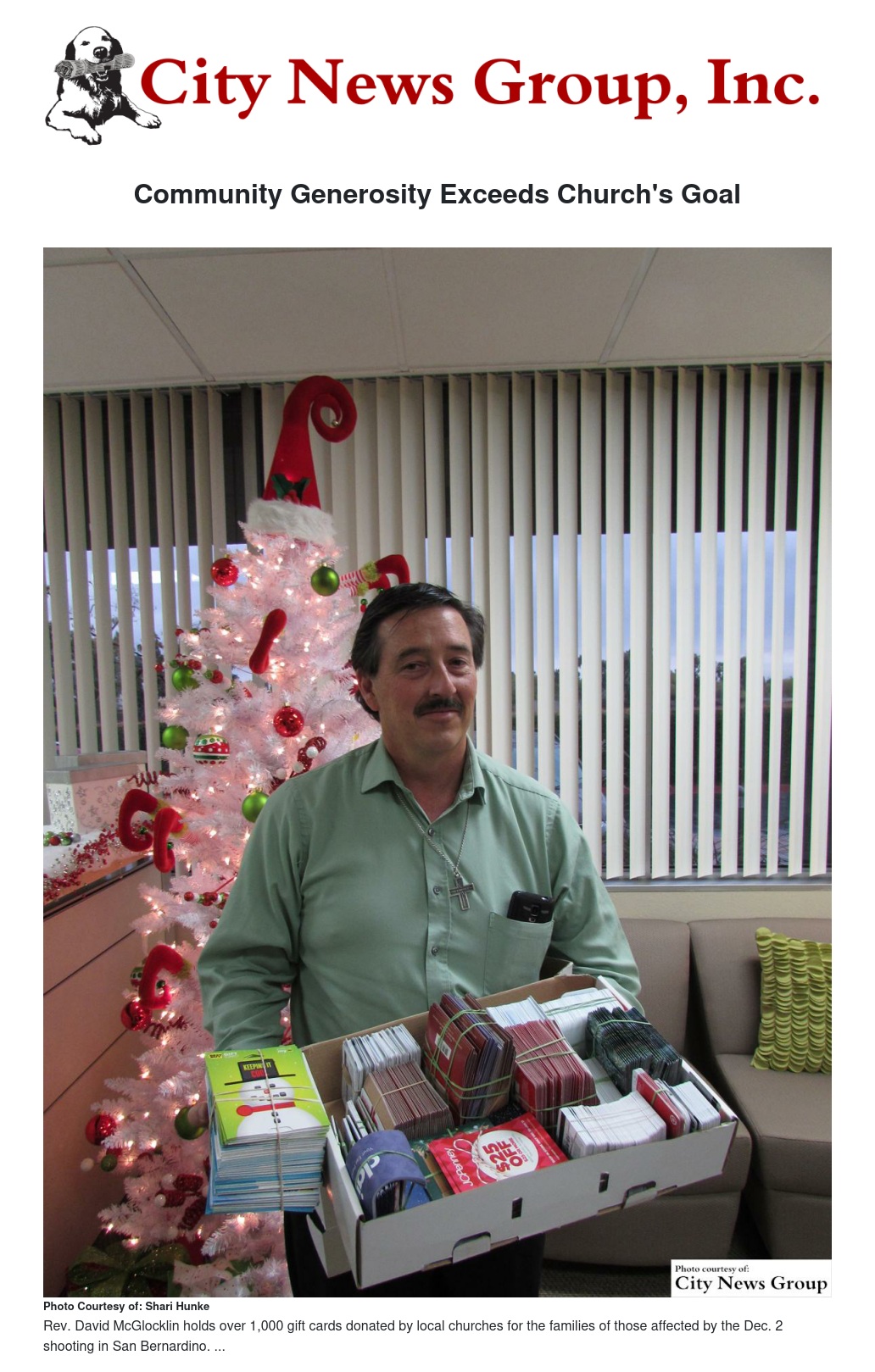 St. Paul’s United Methodist Church in San Bernardino, along with 11 neighboring Methodist churches, was able to collect over $11,000 in gift cards for the families of the victims of the Dec. 2 attack in San Bernardino.