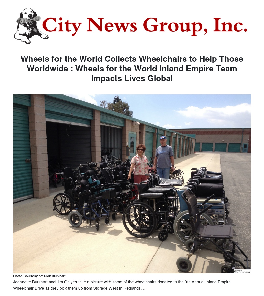 Wheels for the World Collects Wheelchairs to Help Those Worldwide : Wheels for the World Inland Empire Team Impacts Lives Global