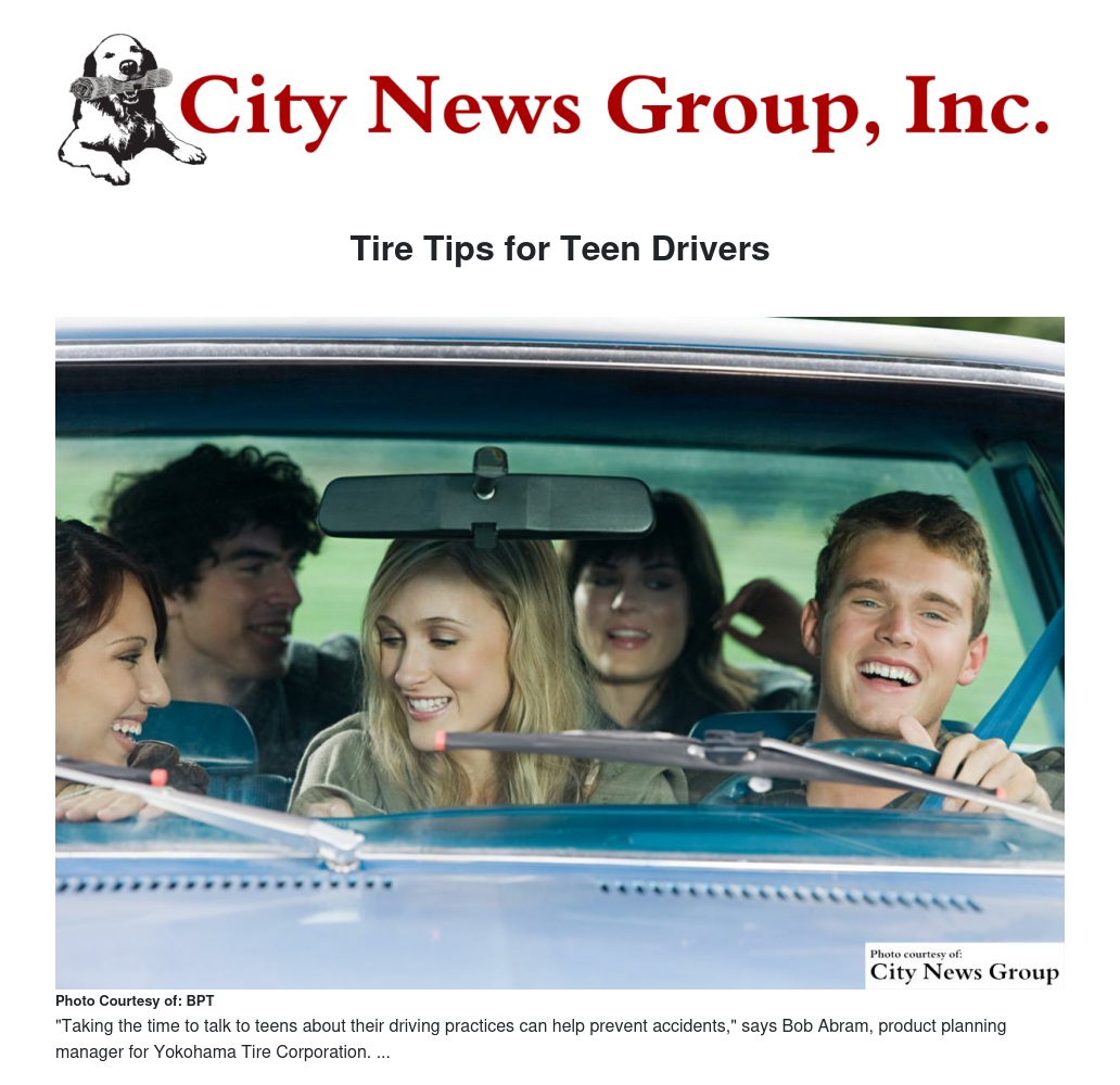 "Taking the time to talk to teens about their driving practices can help prevent accidents," says Bob Abram, product planning manager for Yokohama Tire Corporation, maker of a variety of truck and car tires. "Teaching teens about proper vehicle maintenance - especially tires - is also important and often overlooked."