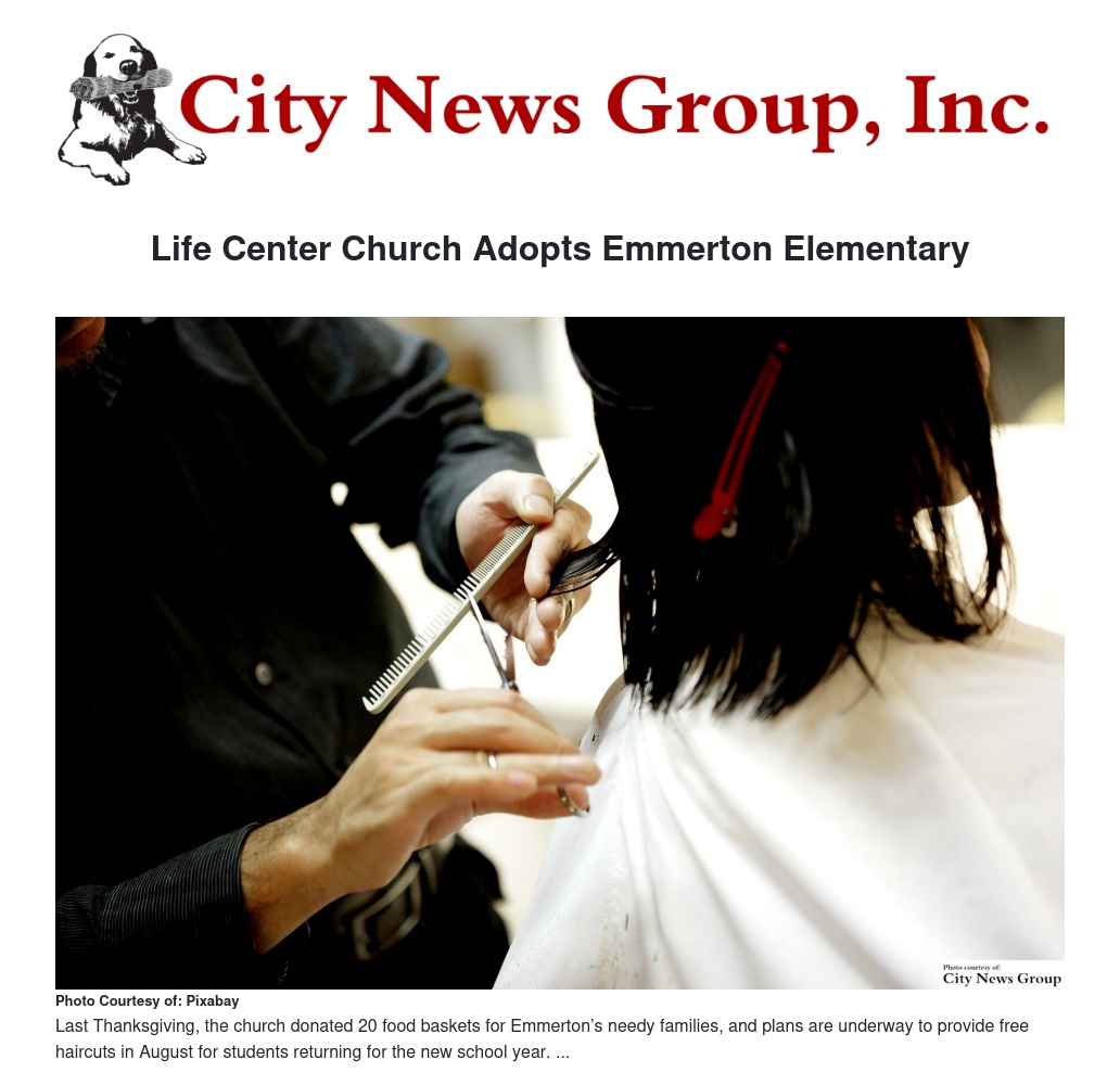 Last Thanksgiving, the church donated 20 food baskets for Emmerton’s needy families, and plans are underway to provide free haircuts in August for students returning for the new school year.