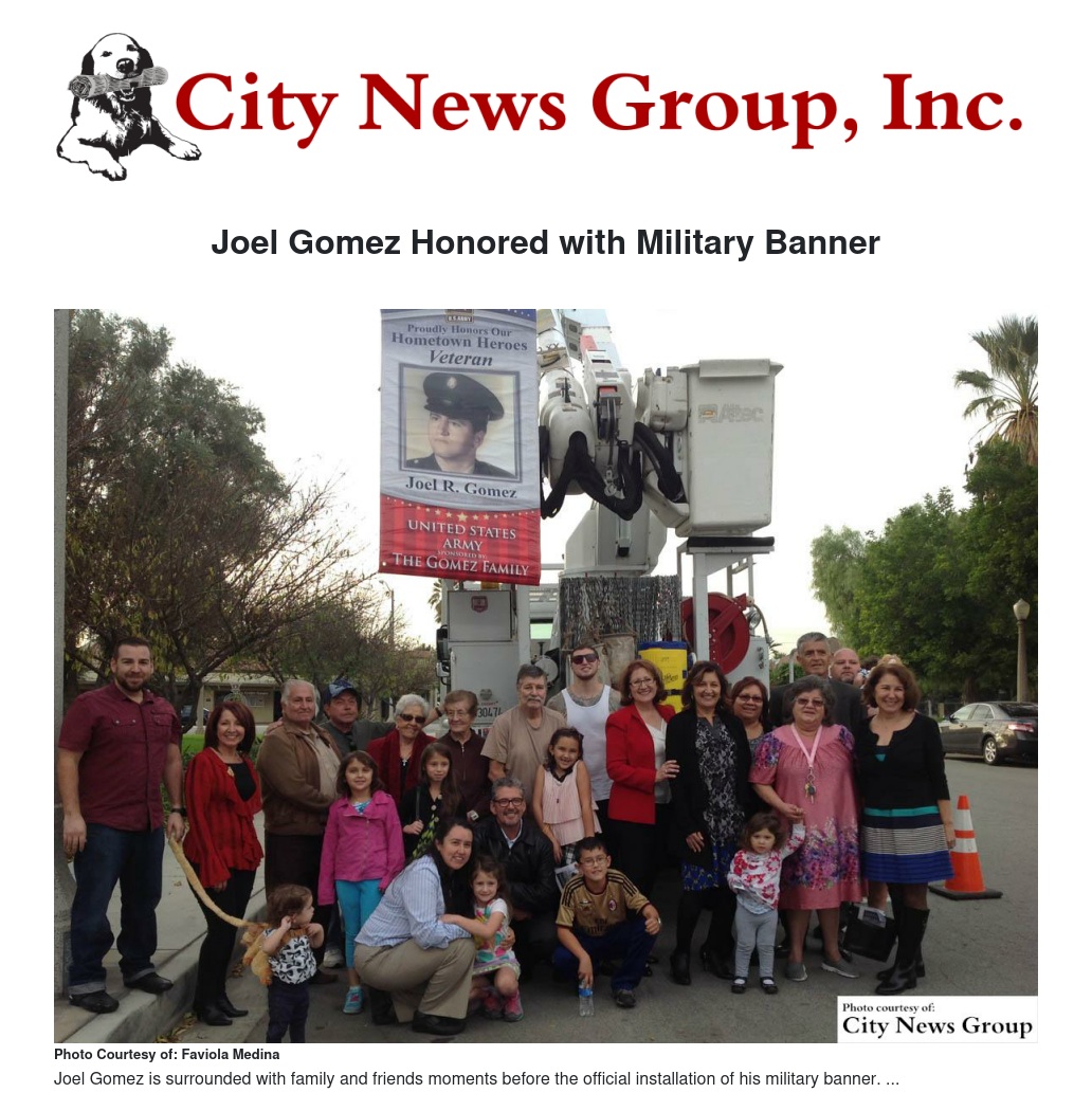 Joel R. Gomez, 72, was honored with a military banner installation ceremony on Wednesday, Dec. 10, by family, friends, and the City of Colton.