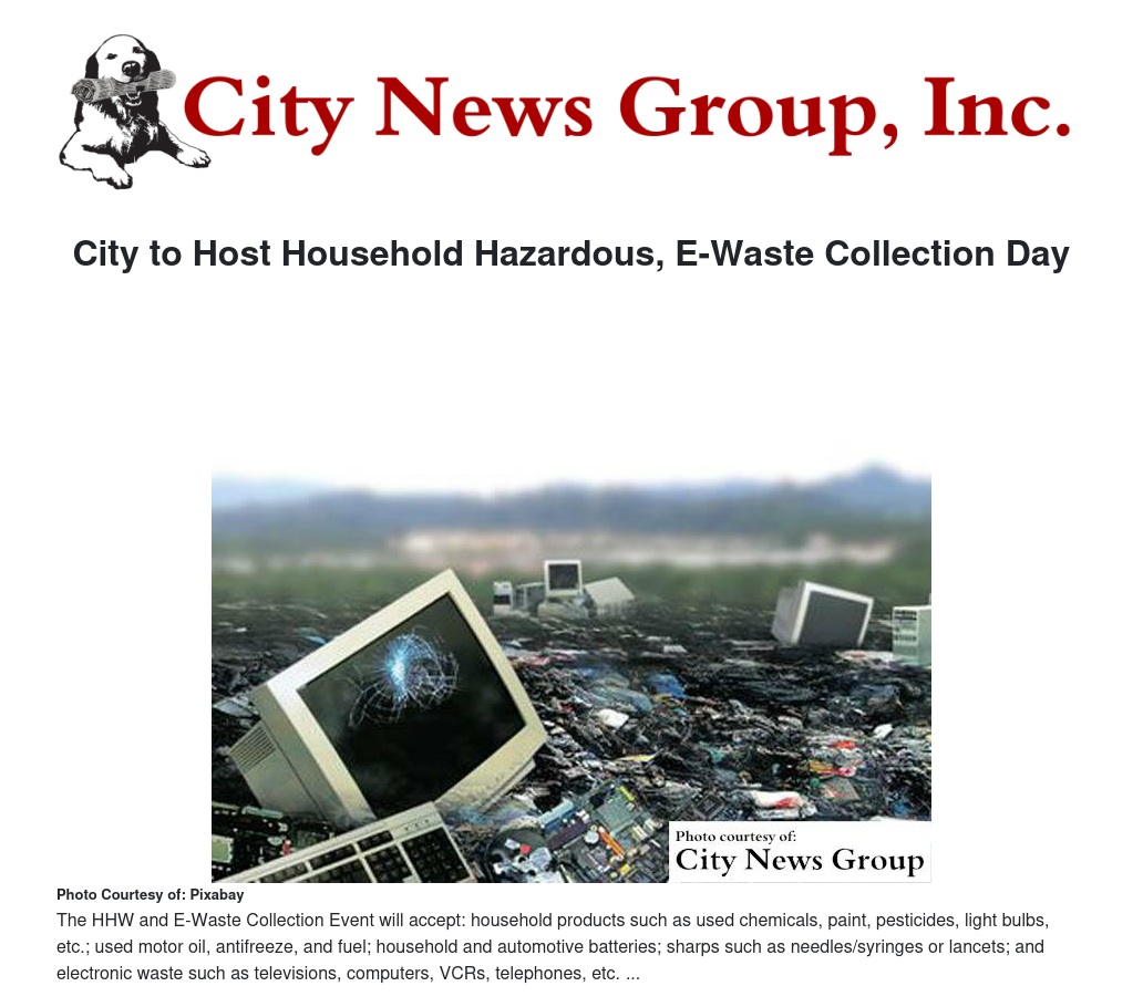 City to Host Household Hazardous, E-Waste Collection Day
