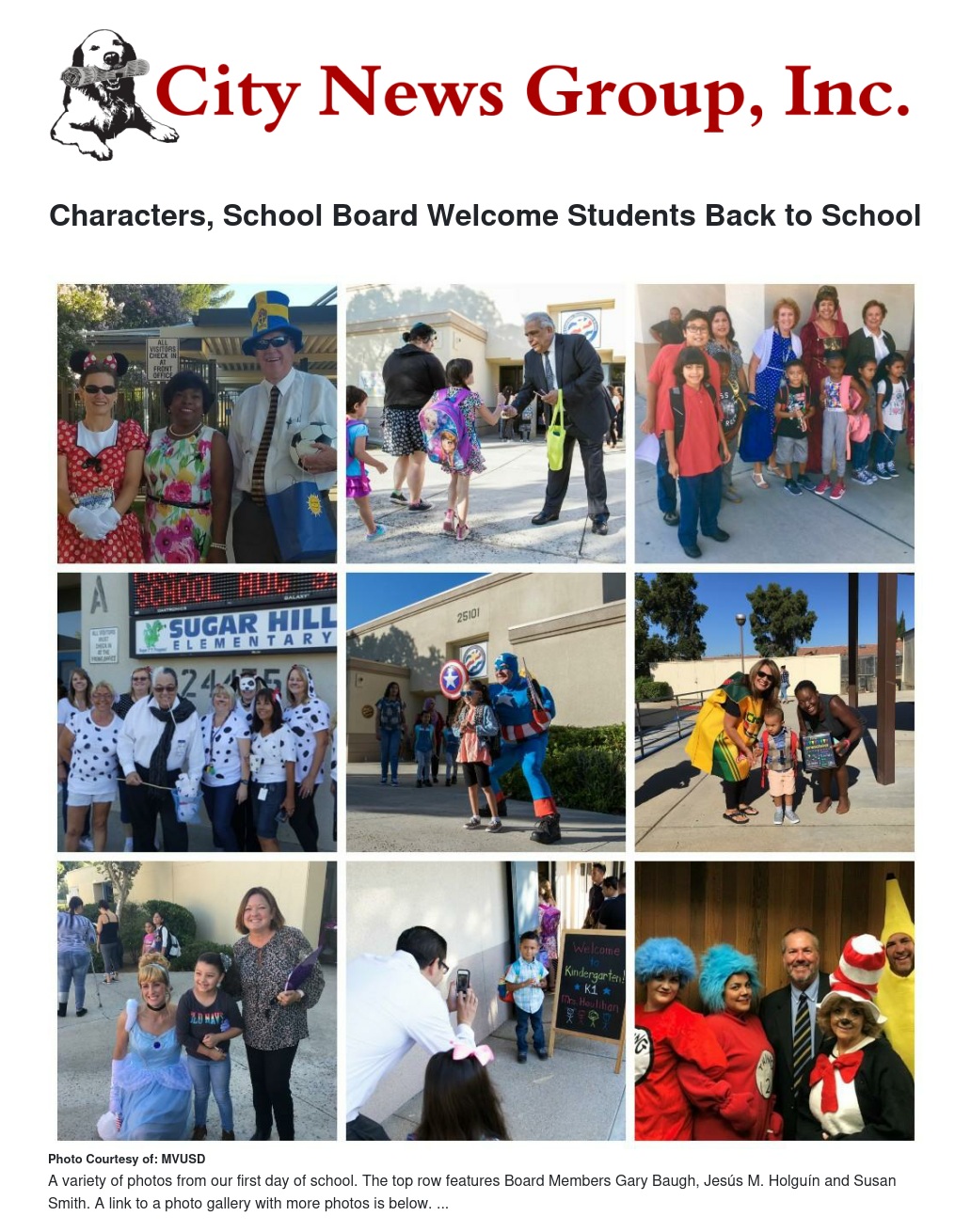 Characters from fairy tales, books and movies made appearances at Moreno Valley Unified School District Elementary schools Wednesday as part of our yearly tradition to kick off the new school year with an energetic welcome. The characters were a big hit!