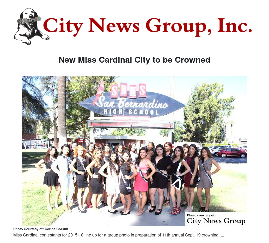Miss Cardinal City, along with reigning Mr. Cardinal City, will represent San Bernardino High School at school and community functions throughout the year.