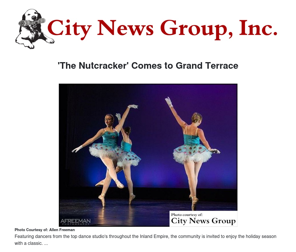 The Nutcracker Ballet will feature three shows on Saturday, Dec. 3 at 2:30 pm and 7:30 pm, and Sunday, Dec. 4 at 4:30 pm, at Grand Terrace High School.