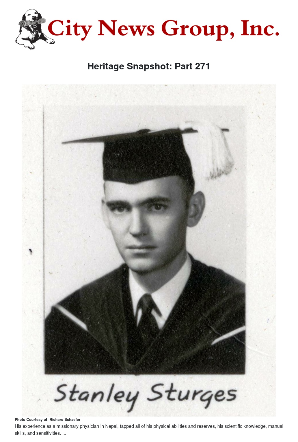 Sturges and his wife Raylene Duncan Sturges, RN (CME class of 1953) went to Nepal in 1957, just two years after his graduation from medical school. Their first home was a two-room, 15 feet square, two-story structure with no stairway. To access the top floor, they had to use an outside ladder. The six-feet-four-inch physician often bruised his forehead while entering low doorways during house calls for his short Nepalese patients.