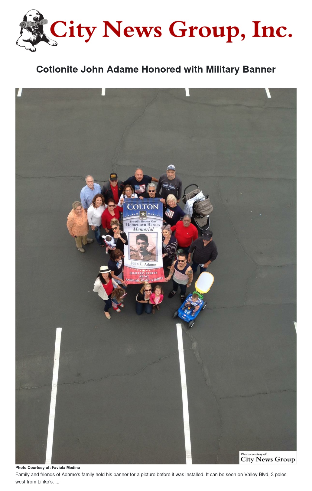 Coltonite John C. Adame was honored by his family, friends, and the City of Colton with his very own military banner installation ceremony on May 27.